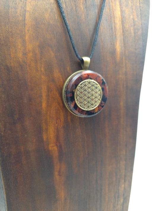 Orgonique Schutz-Amulett, Tigerauge, Blume des Lebens